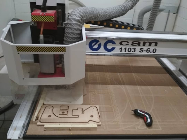 Cuando lo fabricaba yo lo hacia con una fresa de 3mm y tardaba casi 30min por cada bancada, en cambio con la CNC del hirikilabs las bancadas se cortan en cuestión de muy pocos minutos.