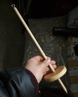 El pasado 14 de Febrero mientras esperaba a que llegasen los del taller a recoger el Quad para pasar la ITV, cogí un trozo de contrachapado de 15mm, una varilla de haya de 10mm y con una corona de 95mm fabrique este huso.