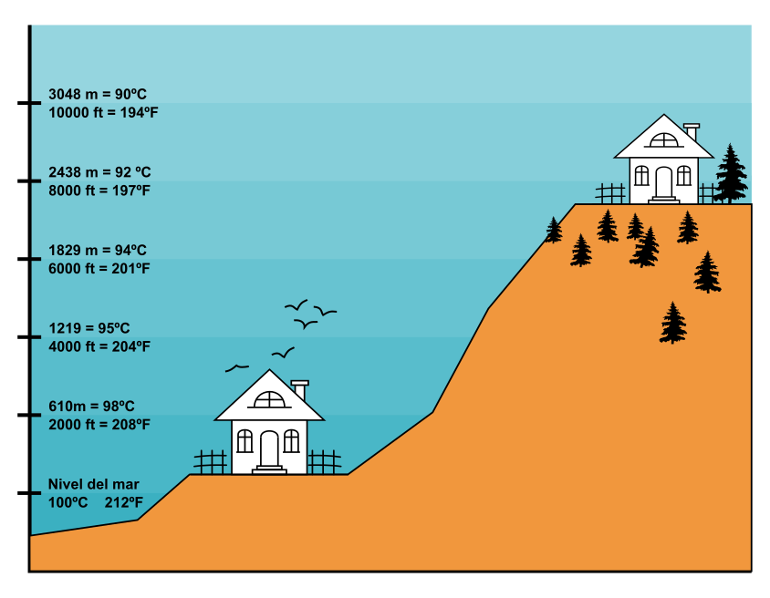 Iitsasmalaren altitudea 150 metroko igotzen den bakoitzeko, uraren irakite-puntua 0,5 °C gutxi gorabehera jaisten da.