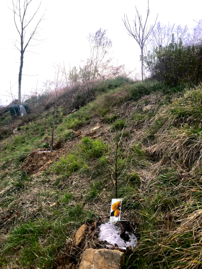 Aukeratutako tokia lursailaren ezponda («talud») bat izan da. Ezpondek badute zerbait berezia: askotan, aprobetxatzen ez badira, soro edo bideen artean ahaztuta geratzen diren espazioak izaten dira. Hala ere, ikuspegi pixka batekin, zuhaitzak landatzeko leku oso interesgarriak bihur daitezke.